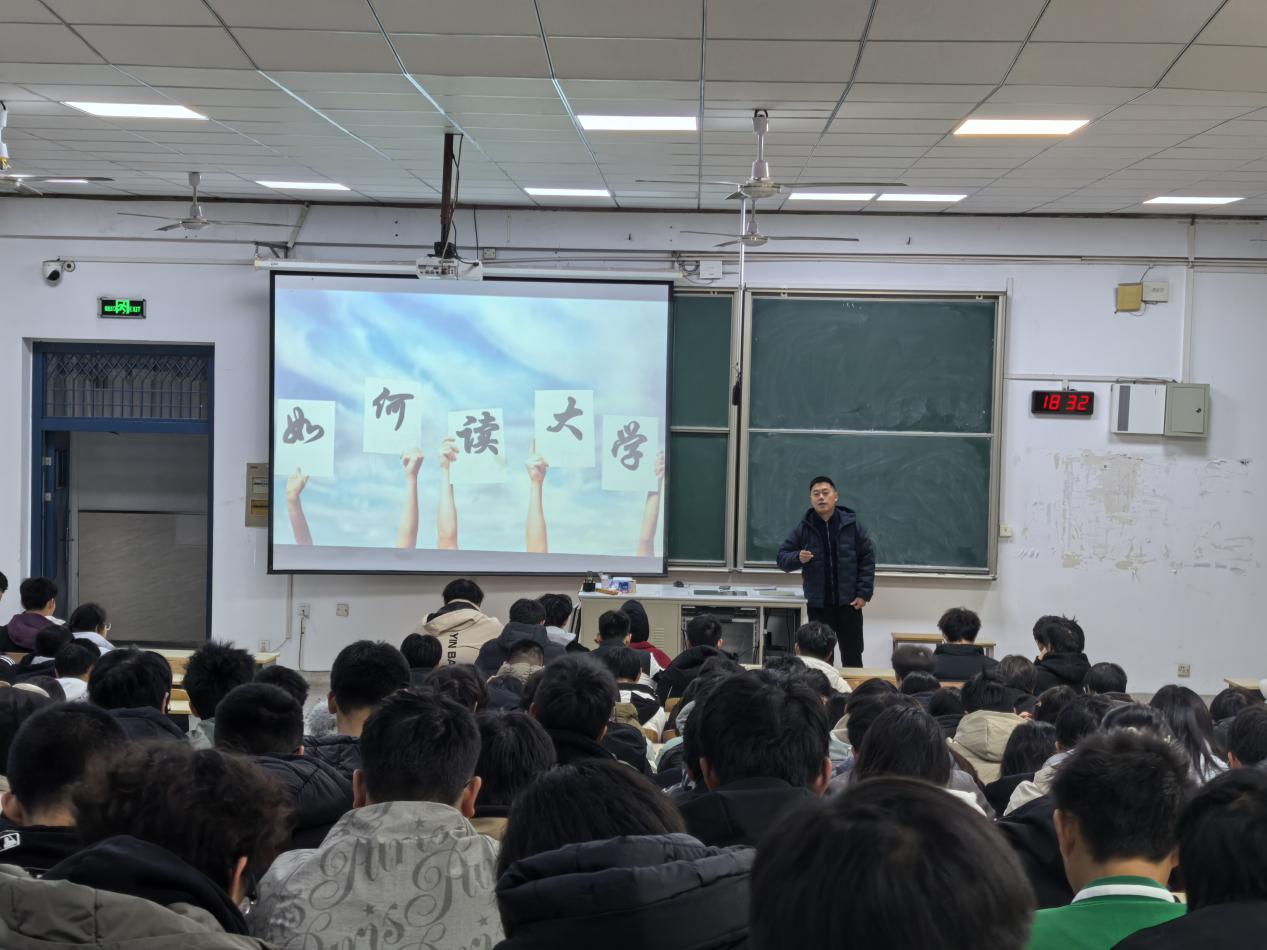 讲座伊始,凌诚结合多年学生工作经验,深入剖析了大学与高中在自主学习、人际交往、时间管理等方面的差异,为新生们提供了切实可行的学习生活适应建议。他鼓励同学们尽快完成角色转变,明确目标,珍惜时光,在夯实专业基础的同时,积极参与实践活动,全面提升综合素质。