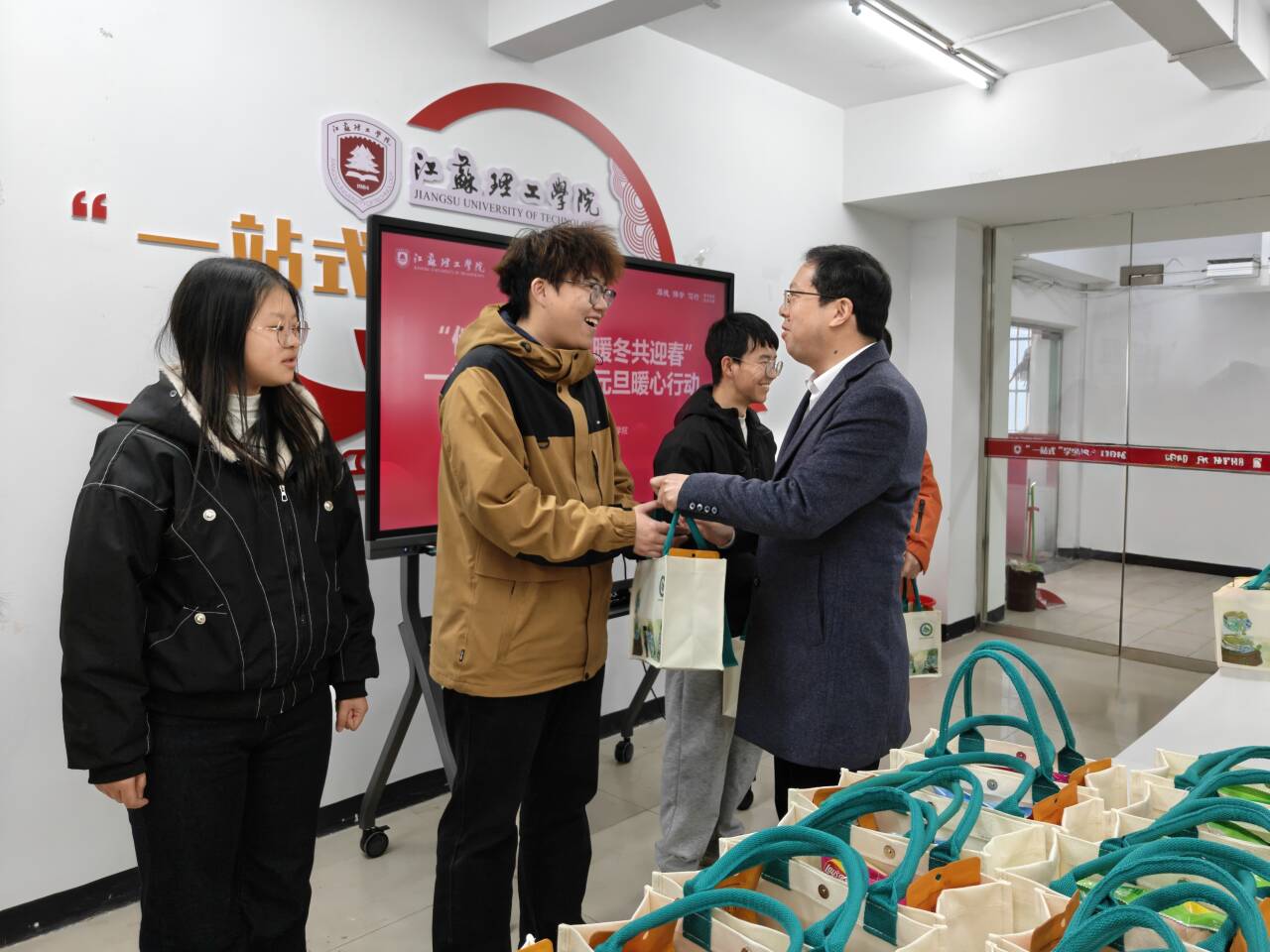 全体师生共同观看了温情短片《一程相遇,一路向阳》,回顾了同学们从初入校园到融入集体的成长点滴,展现了江理工学子奋发向上的青春风貌。化学化工学院教师代表张文怡交流发言,结合自身经历,鼓励同学们珍惜大学时光,主动探索、勇于实践;资源与环境工程学院新生代表贺海霞则分享了自己入学以来的感悟与收获,表达了对学校温暖关怀的感激之情。到会领导老师为学生代表送上节日慰问礼品,传递学校对广大学子的深切关爱。