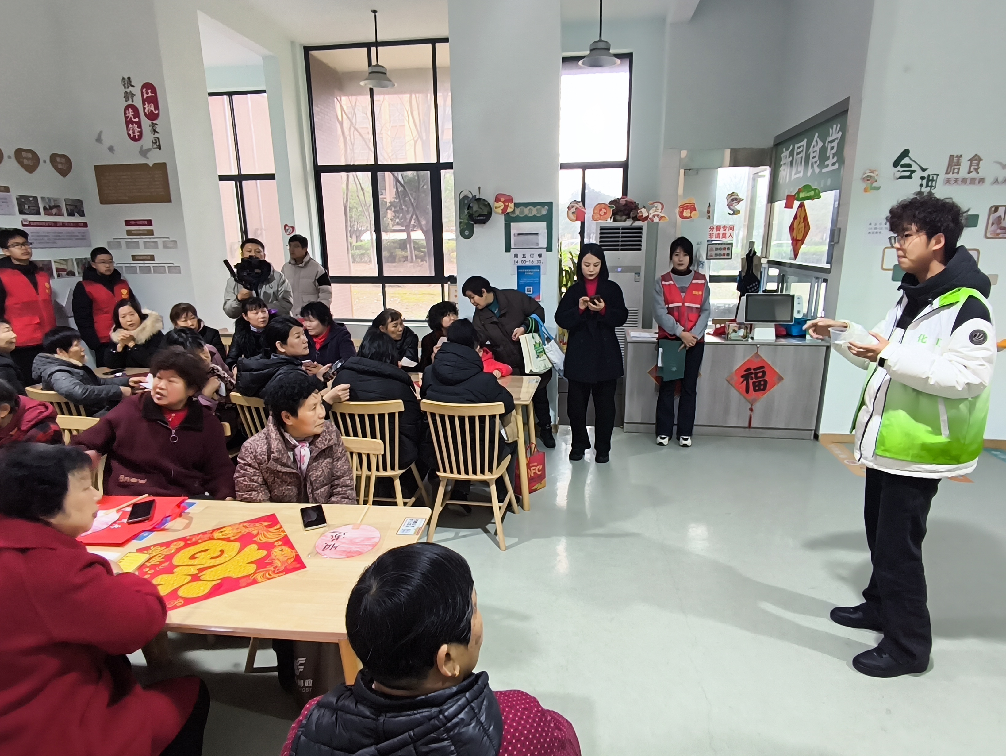 在泰盈社区,我院学生志愿者积极参与社区元宵节活动的筹备与服务。他们协助社区工作人员布置活动现场、维持秩序,为居民营造温馨有序的节日氛围。同时,志愿者们还主动帮助老年人完成健康普测,参与义务剪发等便民服务,用实际行动传递温暖与关爱。