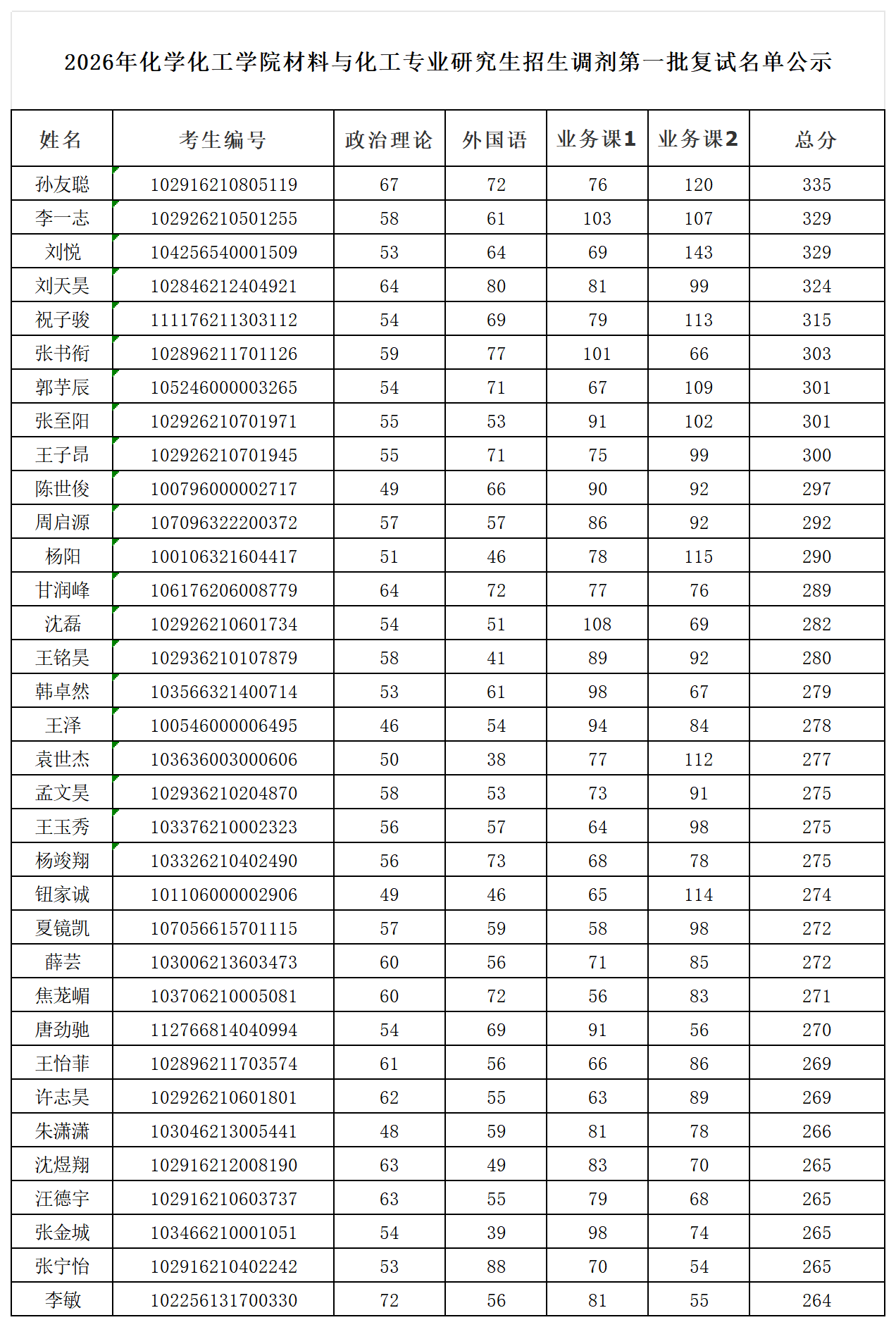 2026年化学化工学院材料与化工专业研究生招生调剂第一批复试名单公示
